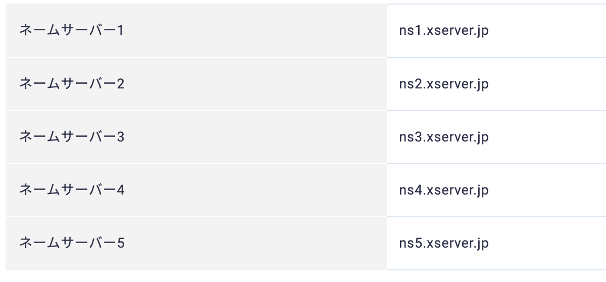 ネームサーバは調べればすぐ出てくるのですがXだと以下。(5つ入れます)