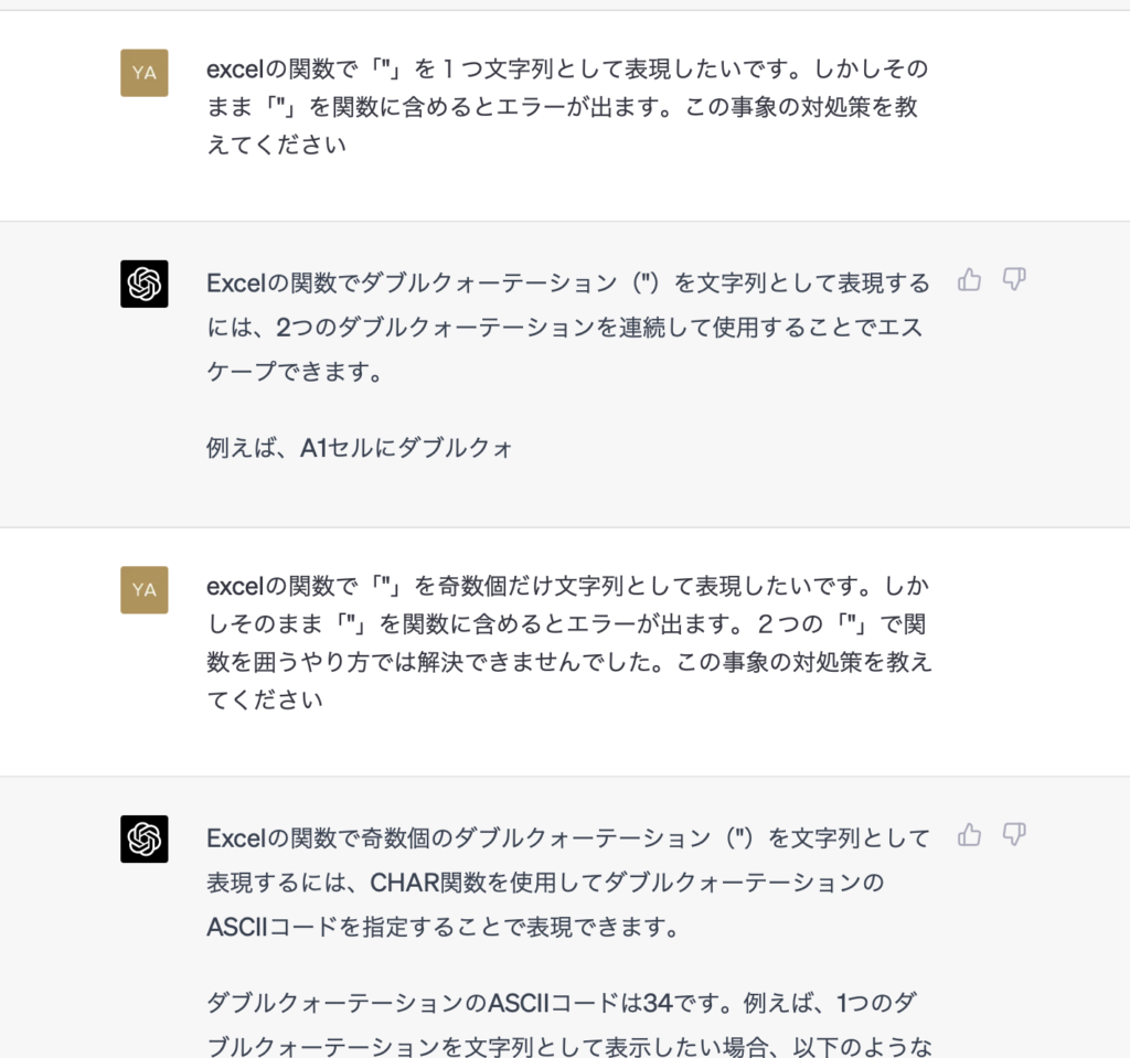 Excel関数で「”(ダブルクォーテーション)」を1つ(奇数個)だけ入れる方法!CHARを使うとAIが教えてくれた