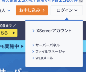 まずは「エックスサーバーのレンタルサーバー:メニュー」に入ります。
