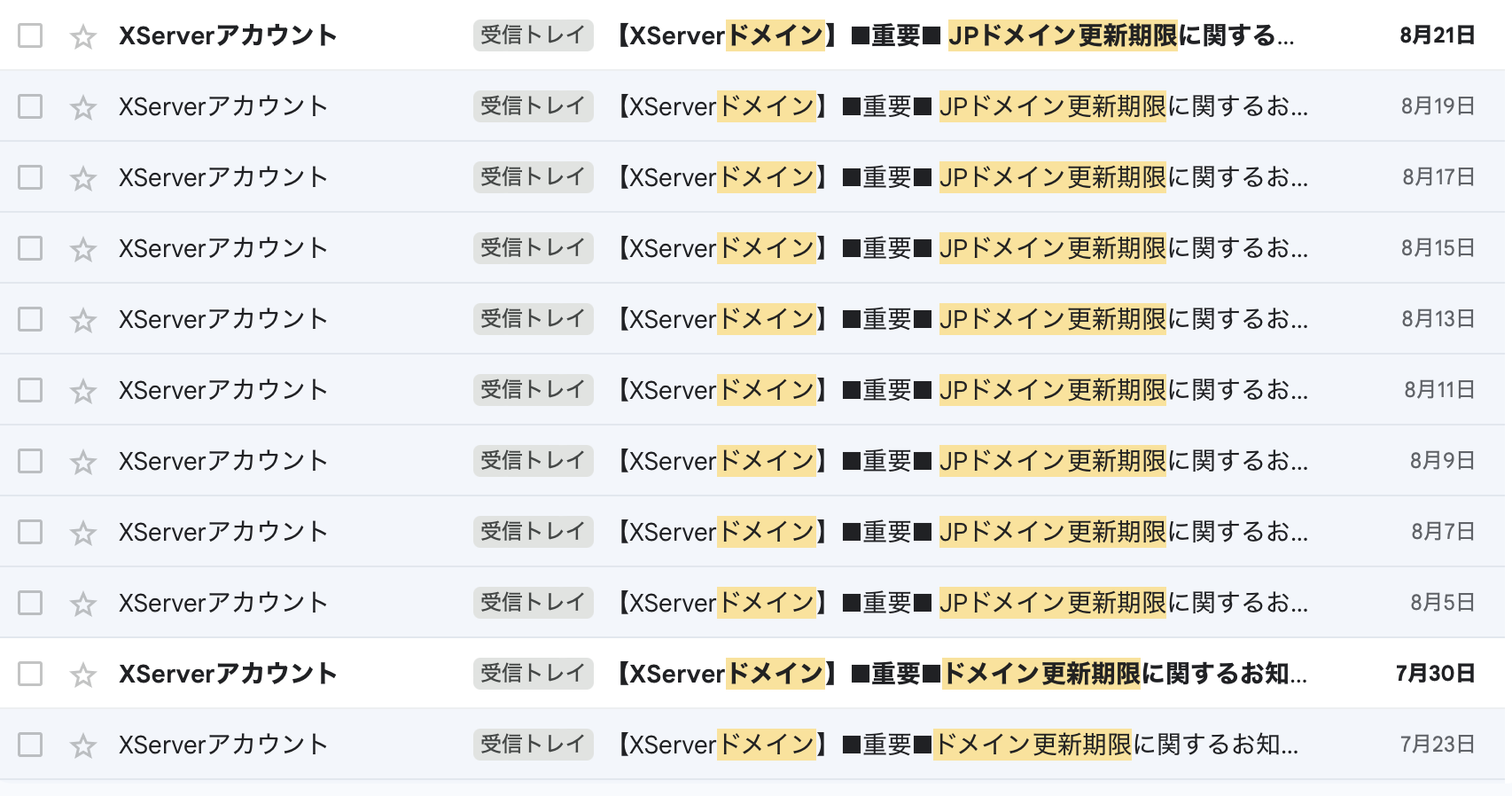 Xserverのドメイン期限通知メールが無限に来てうざい問題の解決策は「解約」